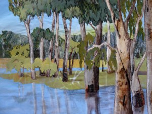 I’m not sure about the title of the quilt….’Red Gums in Flood’ does not sound very interesting–perhaps I will come up with something else by the time I have finished it.